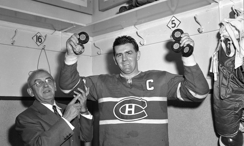 Twice in the first period, Hap Day’s Toronto Leafs rode with a one goal edge on the Montréal Canadiens to a rough and ready puck contest at Maple Leaf Gardens Saturday night. But at the finish, the heavier, older and more experienced Montréalers had a 5-2 decision to their credit.